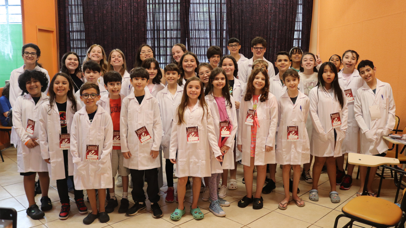 Na quarta-feira, o foco foi o “Corpo das Evidências”, trazendo o ambiente da Anatomia para o centro da investigação. Na oficina de Investigação Forense, as crianças participaram da extração de material genético (DNA), entendendo como esse tipo de evidência é utilizado para identificar indivíduos e solucionar mistérios.