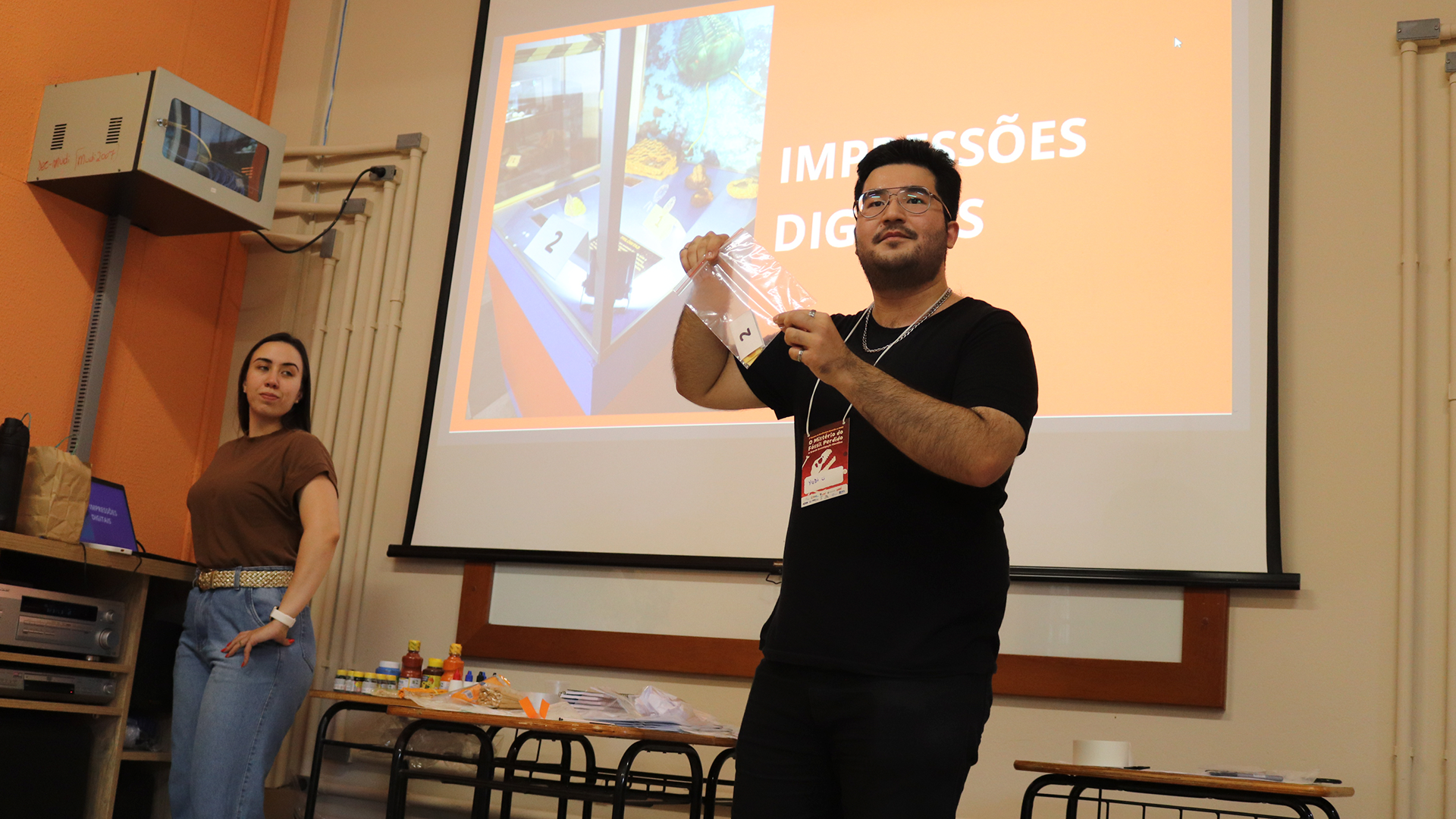 Yudi e Giovanna na oficina de impressões digitais (Foto/João Gomes)