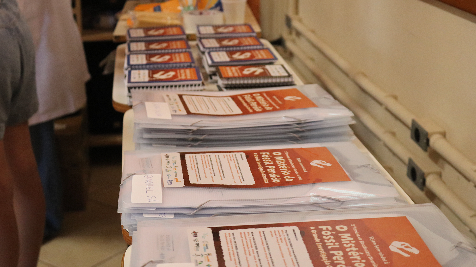 A cada dia, as oficinas traziam uma pista que ajudava a avançar na investigação sobre quem havia extraviado o fóssil, sempre conectando o mistério ao conteúdo trabalhado.