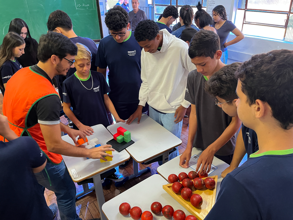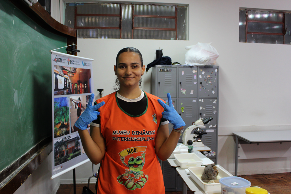 Maria José Pastre, pós-doutoranda do NAPI Paraná Faz Ciência e professora do Ensino Fundamental e Médio no colégio, foi quem deu o pontapé na iniciativa, já que a realidade de muitos dos alunos impede ir a Maringá e conhecer uma universidade. “Levar o Mudi até eles é uma forma de aproximar esse universo e plantar uma sementinha de conhecimento. Poder tocar, interagir e ver de perto peças, que antes estavam só nos livros, fez toda a diferença. Foi um dia que mostrou que todo o esforço valeu a pena.”