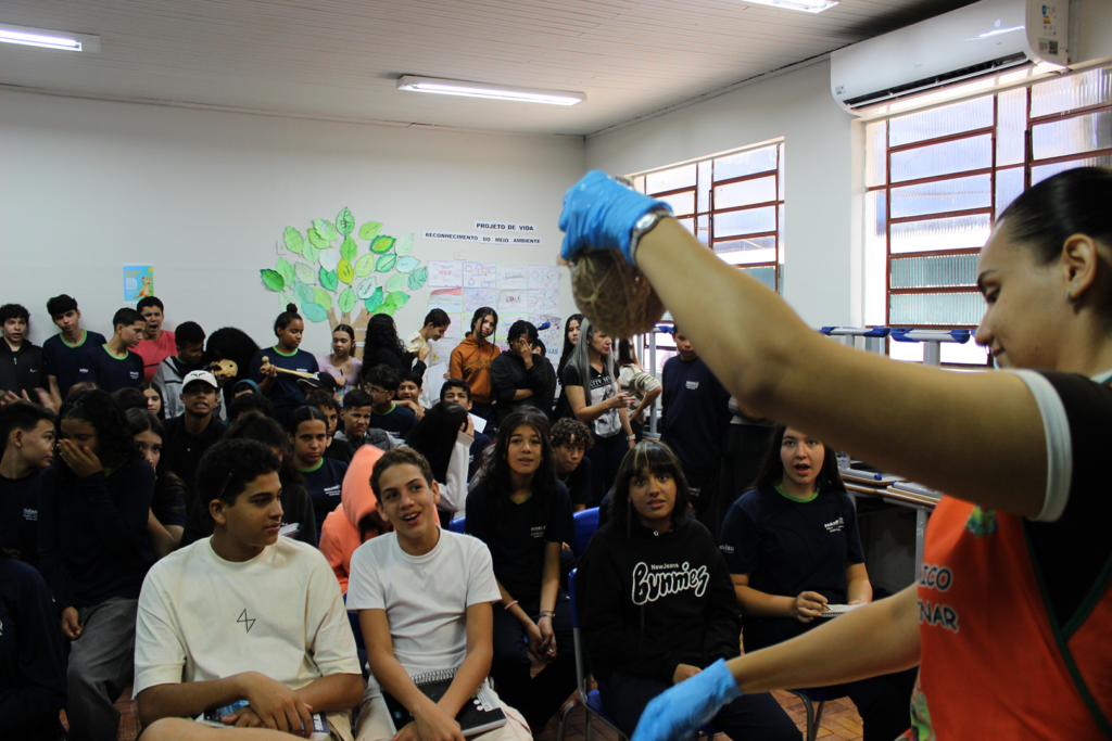Ação no Colégio Estadual Olavo Bilac, em Sarandi, ensina e encanta estudantes